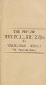 The private medical friend, or, A warning voice to young men : an essay on the errors of youth and the secret infirmities of the generative organs, resulting from solitary habits, youthful excess, or infection, with practical observations on the premature failiure of sexual power illustrated with many cases in proof of the Author's succesful mode of treatment / by Henry Smith.