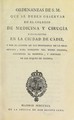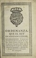 Ordenanza, que el Rey Nro. Señor ha mandado expedir, estableciendo varias providencias para el cuidado de la publica salud en todo el Reyno, à fin de precaver los graves daños, que se experimentan de no quemar promptamente los equipages, y muebles de los que mueren de enfermedades contagiosas.