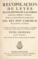 Recopilacion de leyes de los reynos de las Indias. Mandadas imprimir y publicar por la Magestad católica del Rey Don Cárlos II. Nuestro Señor.
