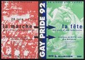 Gay Pride 92 : 20 juin / Paris : la marche pour la fierté homosexuelle ... La fête des gais et des lesbiennes / avec l'aide du SNEG et le soutien de: Agence Française de lutte contre le sida.