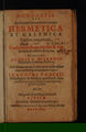 Succincta et brevis artis chemiae instructio. Das ist: volkomner gründlicher Bericht der rechten und waren Alchimey / [Joachim Tancke].