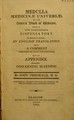 Medulla medicinae universae: ovvero nuova compendiosa farmacopea, che contiene in epilogo tutto ciò, ch'è necessario essenzialmente per corrispondere ad ogni medica intenzione / Composta per comando di Sua Altezza Reale il duca di Cumberland ad uso dell'ospedale de' soldati, da' medici e chirurgi del re, dal chirurgo, e dallo spezial generale dell'armata ... A cui si aggiunge un commento annesso ad ogni ricetta [by J. Theobald] ... Con una appendice ... alcuni pratici avvertimenti intorno all'uso ed abuso del salasso.