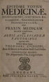 Epitome totius medicinae, institutiones, chymiam rationalem, commentarium pharmaceuticum, atque praxin medicam succincte complectens / Opus artis Asclepiadeae fautoribus apprime utile ... Addita est in calce Theodori Zwingeri ... dissertatio medica de adquirenda vitae longaevitate.