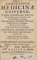 Compendium medicinae universae, e scriptis probatissimorum auctorum, tam viventium quam mortuorum, puta Ettmülleri, Waldschmidii, Sennerti, Wedelii, Boerhavii, aliorumque, singulari opera concinnatum, institutiones, chymiam, pharmaciam et praxin medicam succincte tradens / Studiose emendatum, auctum, et notis utilibus hinc inde illustratum a Theodoro Zvingero.