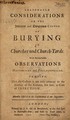 Seasonable considerations on the indecent and dangerous custom of burying in churches and church-yards. With remarkable observations historical and philosophical ... Proving, that the custom is not only contrary to the practice of the ancients, but fatal, in case of infection / [Anon].
