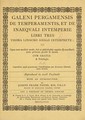 Galeni de temperamentis libri tres. De inæquali intemprie liber unus. Thoma Linacro Anglo interprete.
