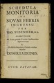 Schedula monitoria de novae febris ingressu / Thomas Sydenham.