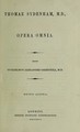 Opera medica. Quibus additi fuere tractatus sequentes / I. Gualt. Harris De morbis acutis infantium. II. Gul. Cole Novae hypotheseos ad explicanda febrium intermittentium symptomat. & typos excogitatae hypotyposis &c. III. Ejusd. De secretione animali. IV. Mart. Lister. De morbis chronicis. V. Ejusdem De variolis. VI. Thomae Sydenham Processus integri in morbis fere omnibus curandis, cum tract. de phthisi nunquam antehac edito.