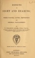 Defects of sight and hearing : their nature, causes, prevention, and general management / by T. Wharton Jones.