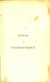 Manual of pharmacology; or compendium of materia medica, conspectus of the London, Edinburgh, and Dublin Pharmacopoeias, and formulary of extemporaneous prescriptions / [T. Wharton Jones].