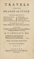Travels through France and Italy. Containing observations on character, customs, religion, government, police, commerce, arts, and antiquities. With a particular description of the town, territory, and climate of Nice ... / By T. Smollett.