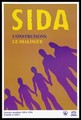 Silhouetted purple figures joining hands against an orange background bearing the words 'SIDA construisons, Le dialogue' representing an advertisement for World AIDS Day, 1st December 1994 by the World Health Organization and UNESCO. Colour lithograph.