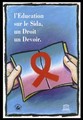 A pair of hands holding an open book bearing the AIDS red ribbon in the centre representing an advertisement for World AIDS Day, 1st December 1995 by the UNESCO Programme of Education for the Prevention of AIDS. Colour lithograph.