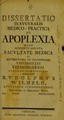 Dissertatio inauguralis medico-practica de apoplexia ... / submittit Rudolphus Wilhelm.