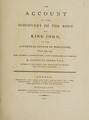 An account of the discovery of the body of King John, in the Cathedral Church of Worcester, July 17th, 1797. From authentic communications; with illustrations and remarks / [Valentine Green].