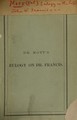 Eulogy on the late John W. Francis, M.D., LL.D : being a discourse on his life and character delivered before the New York Academy of Medicine, May 29, 1861 / by Valentine Mott.