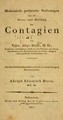Medizinisch-praktische Vorlesungen über die Natur und Heilung der Contagien / von Valer. Aloys Brera ; aus dem Italiänischen übersetzt und mit Anmerkungen herausgegeben von Adolph Friedrich Bloch.