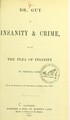 Dr. Guy on insanity & crime, and on the plea of insanity in criminal cases.