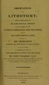 Observations on lithotomy : being a republication of Dr. James Douglas' Appendix to his history of the lateral operation for the stone, and of other original papers relative to Mr. Cheselden's invention and improvement of that operation : to which is added, a Proposal for a new manner of cutting for the stone / by John Thomson.