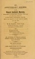 The anniversary sermon of the Royal Humane Society, preached at Grosvenor Chapel, April 4; and ... at ... Southampton, June 20; and at St. Helier's, July 18, 1802 ... With an appendix of miscellaneous observations on resuscitation / By the Society.