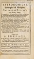 Astronomical principles of religion, natural and reveal'd in nine parts ... ; Together with a preface, of the temper of mind necessary for the discovery of divine truth; and of the degree of evidence that ought to be expected in divine matters / by William Whiston.