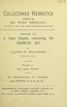 An English translation of the Hermetic Arcanum of Penes Nos Unda Tagi [pseud.] 1623 / With a preface and notes by "Sapere Aude".