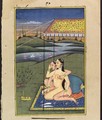 A man copulating with a goat or deer. Gouache painting by an Indian painter.