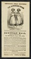 [Illustrated handbill advertising an appearance of Christina and Millie McCoy, 'The African Twins' (or Two-Headed Nightingale) at the Egyptian Hall, Piccadilly, London on 17 September 1855 (in lighter type). They were conjoined twin girls, born in North Carolina in 1851. Their mother was a slave].