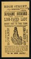 [Undated handbill (June 1894?) advertising Madame Howard, the African lion-faced lady at 199 Borough, London. She appears to have been a black woman with a beard].