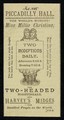 [Small handbill advertising Millie Christine, the Two-Headed Nightingale, and Harvey's Midges (smallest people in the world), appearing at the Piccadilly Hall, London].