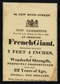 22, New Bond Street : Now exhibiting from ten in the morning till nine at night, an immense French giant : measures exactly 7 feet 4 inches ...