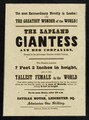 [Undated handbill (printed in Piccadilly by Percival) advertising an exhibition of a 7' 2" Lapland Giantess and her companion at Saville House, Leicester Square, London].