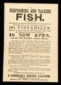 [Undated handbill (1859?) advertising "The performing and talking fish", on exhibition at 191 Piccadilly, London].