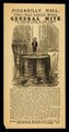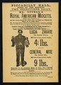 [Leaflet advertising appearances by Uffner's Royal American Midgets: General Mite and Lucia Zarate at the Piccadilly Hall, London. Shows the General standing on a table covered by a cloth].
