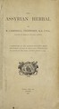 The Assyrian herbal / by R. Campbell Thompson ... a monograph on the Assyrian vegetable drugs, the subject matter of which was communicated in a paper to the Royal society, March 20, 1924.