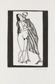 A skeleton as Death embraces a pregnant woman. Woodcut by Gerhard Marcks, 1959.