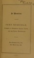 In memoriam : John Merriman, formerly of Kensington Square, London, and the Priory, Marlborough born December 27th, 1800. Died March 24th, 1881.