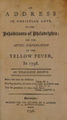 An address in christian love, to the inhabitants of Philadelphia; on the awful dispensation of the yellow fever, in 1798 / By Thaddeus Brown.