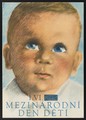 Head of a child with a thoughtful expression, advertising International Children's Day, 1 June 1953. Colour lithograph by J. Flejšar, 1953.