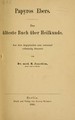 Papyros Ebers : das älteste Buch über Heilkunde / aus dem Aegyptischen zum erstenmal vollständig übersetzt von H. Joachim.