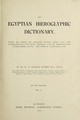 An Egyptian hieroglyphic dictionary : With an index of English words, king list and geographical list with indexes, list of hieroglyphic characters, Coptic and Semitic alphabets, etc / by Sir E.A. Wallis Budge.