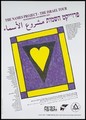 A yellow heart within a black triangle within a purple and yellow square representing an advertisement for the Israel Tour of The Names Project International Memorial AIDS quilt. Colour lithograph, 1994.
