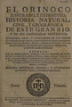 El Orinoco, ilustrado, y defendido, historia natural, civil, y geographica de este gran rio, y de sus caudalosas vertientes: govierno, usos, y costumbres de los Indios sus habitadores con nuevas, y utiles noticias de animales, arboles, frutos, aceytes, resinas, yervas, y raices medicinales / [Joseph Gumilla].