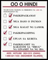 A tick list of ways you can and can't get the AIDS virus from handshakes to sharing drug needles with details of the AIDS Hotline number in Oahu in Tagalog. Colour lithograph.