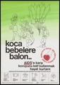 A man holding a bunch of condoms as balloons as another man with a heart above his head does a double take at a glamorous woman passing by above; with diagrams on how AIDS is not contracted along the bottom; an advertisement for safe sex by the OFfice of Federal Health and Swiss AIDS Foundation. Colour lithograph by Birez [?].