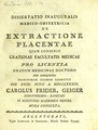Dissertatio inauguralis medico-obstetricia De extractione placentae quam consensu gratiosae facultatis medicae pro licentia gradum medicinae doctoris rite assequendi eruditorum examini submittit die XXIII. Junii a. MDCCLXXXIII. Carolus Frider. Geiger.