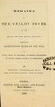 Remarks on the yellow fever of the south and east coasts of Spain : comprehending observations made on the spot, by actual survey of localities, and rigorous examination of fact at original sources of information / by Thomas O'Halloran.