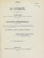Aperçu sur la cataracte : thèse présentée et publiquement soutenue à la Faculté de médecine de Montpellier, le 23 juillet 1838 / par François Despeyroux.