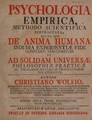 Psychologia empirica / methodo scientifica pertractata; qua ea, quæ de anima humana indubia experientiæ fide constant, continentur et ad solidam universæ philosophiæ practicæ ac theologiæ naturalis tractationem via sternitur. Autore Christiano Wolfio.