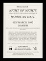Night of nights : a gala benefit for London Lighthouse : Barbican Hall 6th March 1992, 10.00pm : with a host of stars all doing something slightly different... / Barbican Centre.